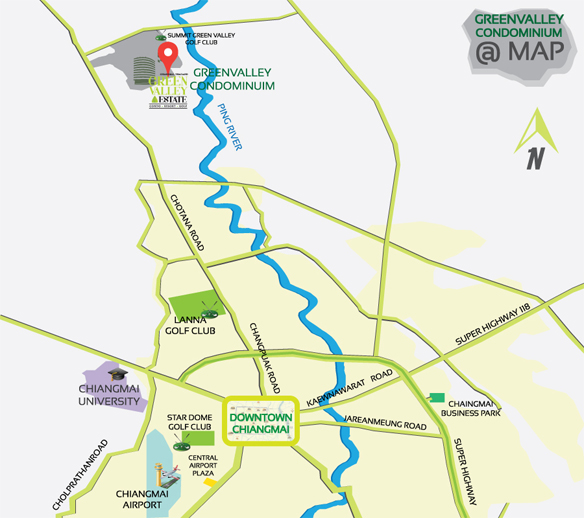 ONLY MINUTES FROM THE CITY, GREEN VALLEY CONDOMINIUM CHIANGMAI IS SET AMONGST THE LUSH LANDSCAPE OF CHIANGMAI, WITHIN THE EXCLUSIVE GREEN VALLEY CONDOMINIUM,YOU ENJOY UNRIVALLED CONVENIENCE AND ACCESSIBILITY TO BUSINESS AND LEISURE ACTIVITIES. |